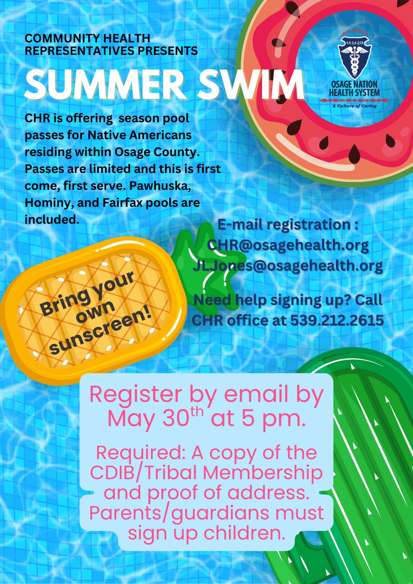 Need assistance registering? Call CHR at 539.212.2615.